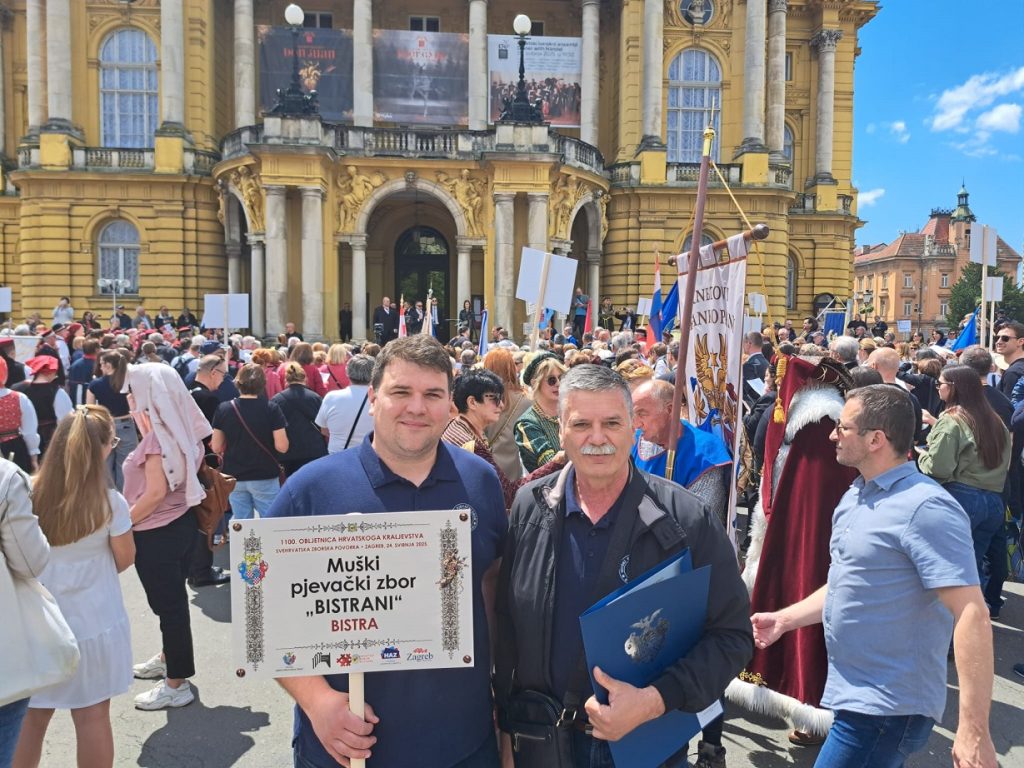 Ove subote, s početkom točno u podne, u Zagrebu ispred Hrvatskog narodnog kazlišta održana je „Svehrvatska zborska povorka“, na kojoj je sudjelovao i Muški pjevački zbor Bistrani.