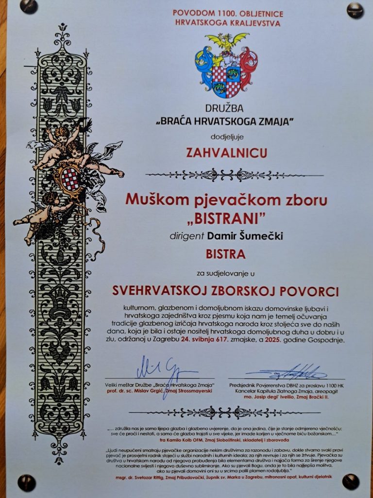 Događanje je održano u organizaciji društava Braće Hrvatskog Zmaja i Hrvatskog sabora kulture, čijim je članom i MPZ Bistrani.